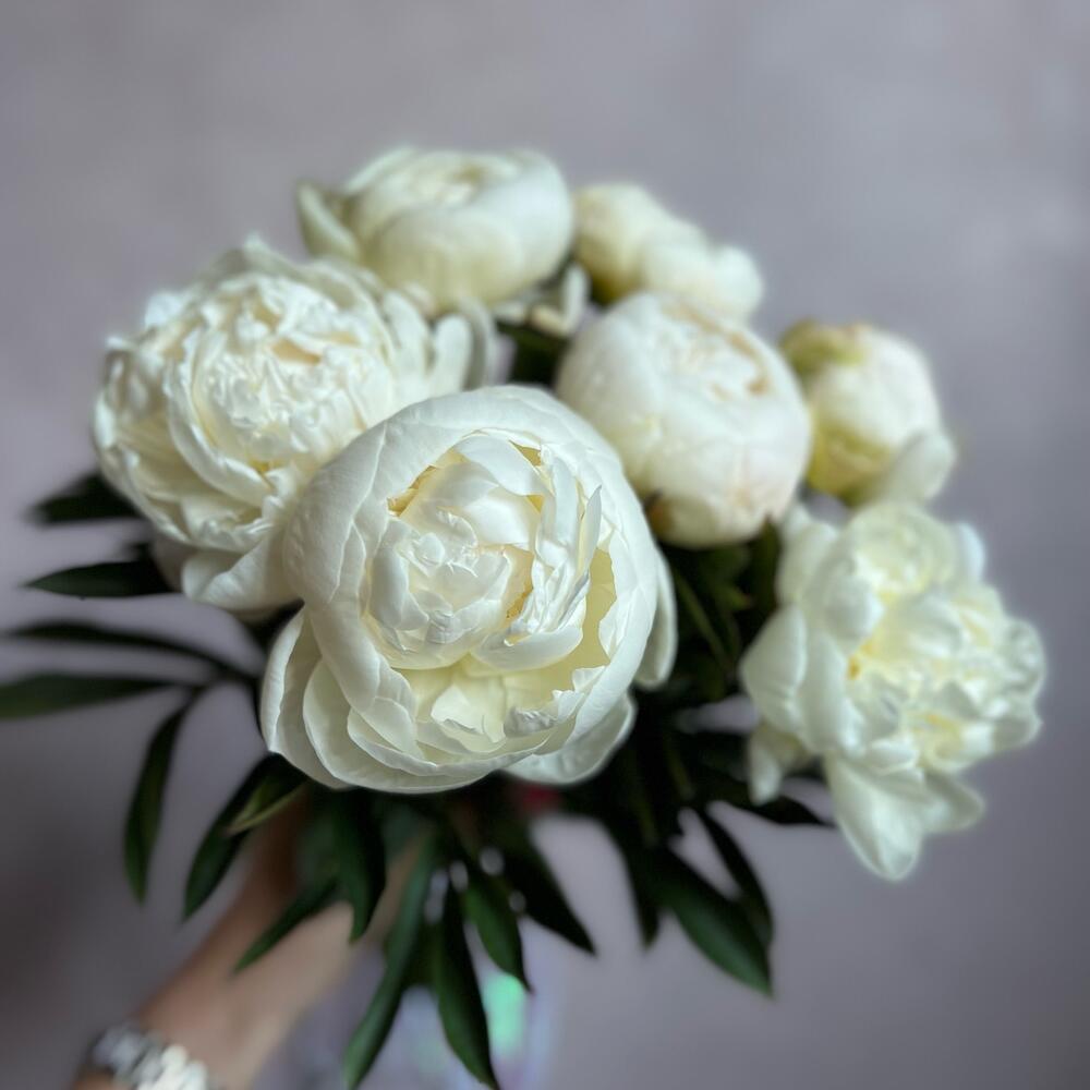 Невесомое облако белых роскошных пионов не оставит равнодушным никого – такой букет невероятно приятно как дарить, так и получать.В подарок к нашему букету Вы получите:- Открытку с правилами ухода за свежими цветамиДоставим быстро и бережно.* К сожалению, мы не … Показать ещёможем гарантировать 100% копию букета. Ежедневно к нам в салон приезжают свежие цветы и они могут отличаться друг от друга. Со своей стороны, мы гарантируем соблюсти состав и общий стиль вашего букета. При возникновении вопроса о замене дизайнерской упаковки – мы обязательно свяжемся с вами. Букет из живых цветов мы начинаем собирать после оформления заказа.