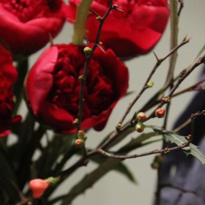 Пионы, гревиллия и ветви