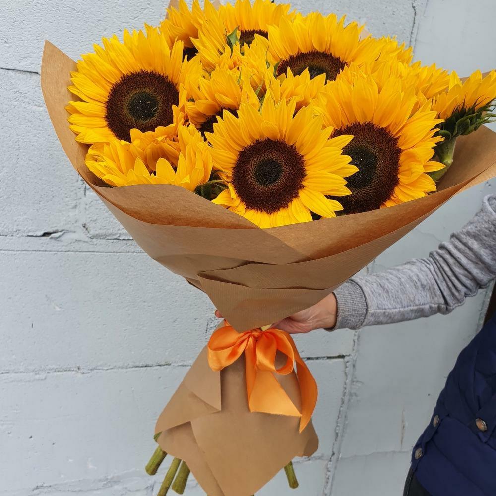 Подсолнух желтый – 11 шт.Упаковка крафт – 1 шт.Лента атласная – 1 шт.