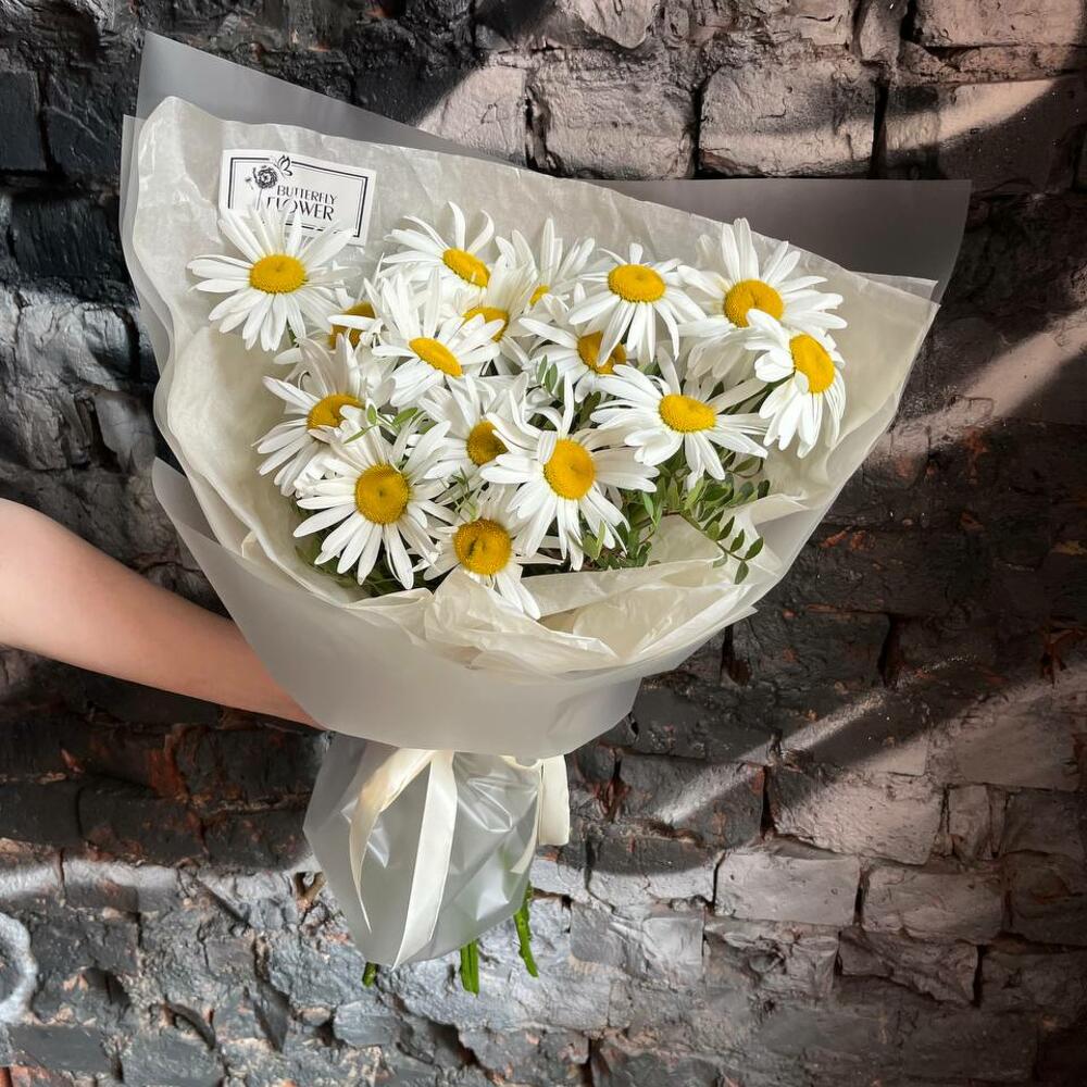 Букет из 15 садовых ромашек в стильной упаковке “Авирам”