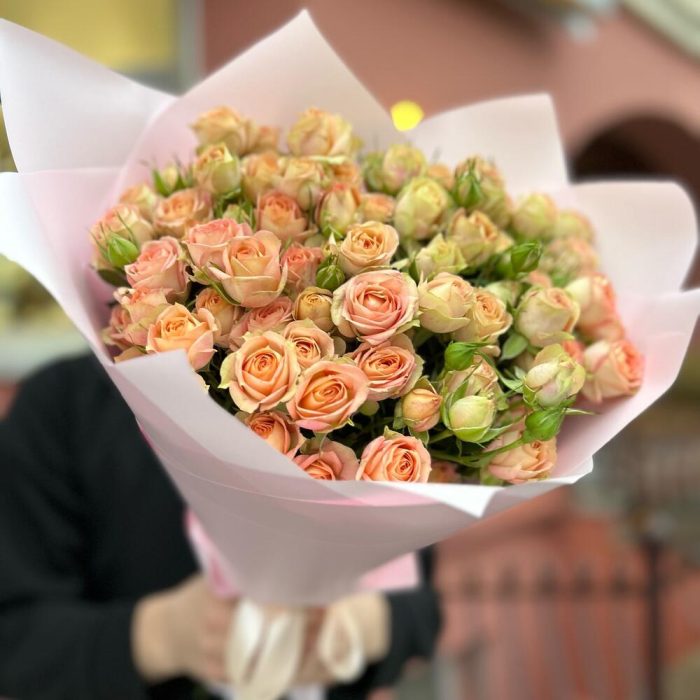 Букет из 15 кустовых веток сорта Азор . Количество бутонов (розочек) в букете может достигать 101 штуки.