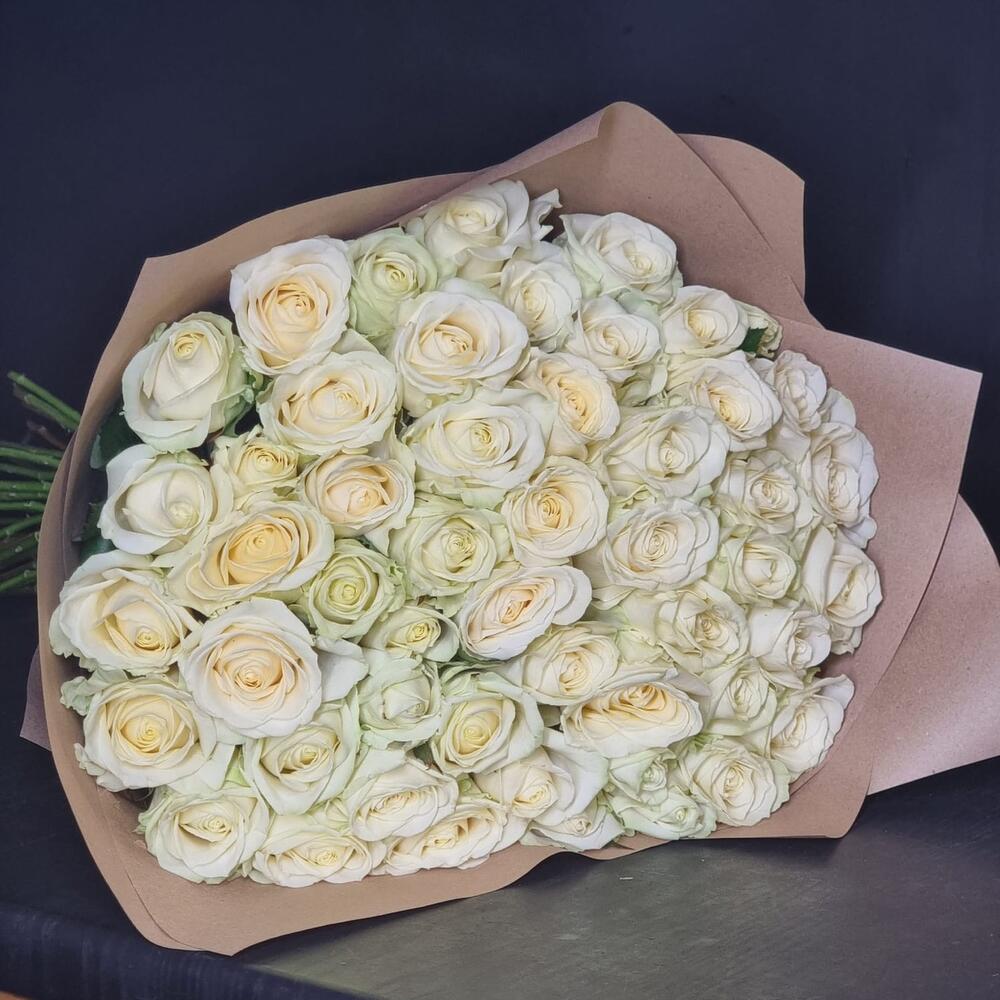 Роза 60 см – 51 шт.Крафт упаковка – 1 шт.Лента атласная – 1 шт.