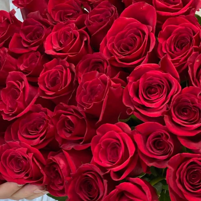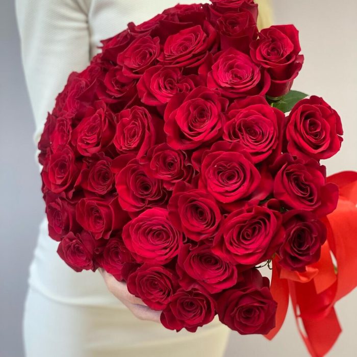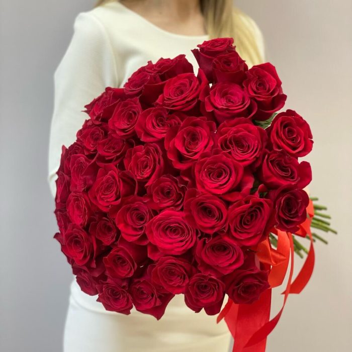 Роза эквадор 50 см – 51 шт.атласная красная лента – 1 шт.