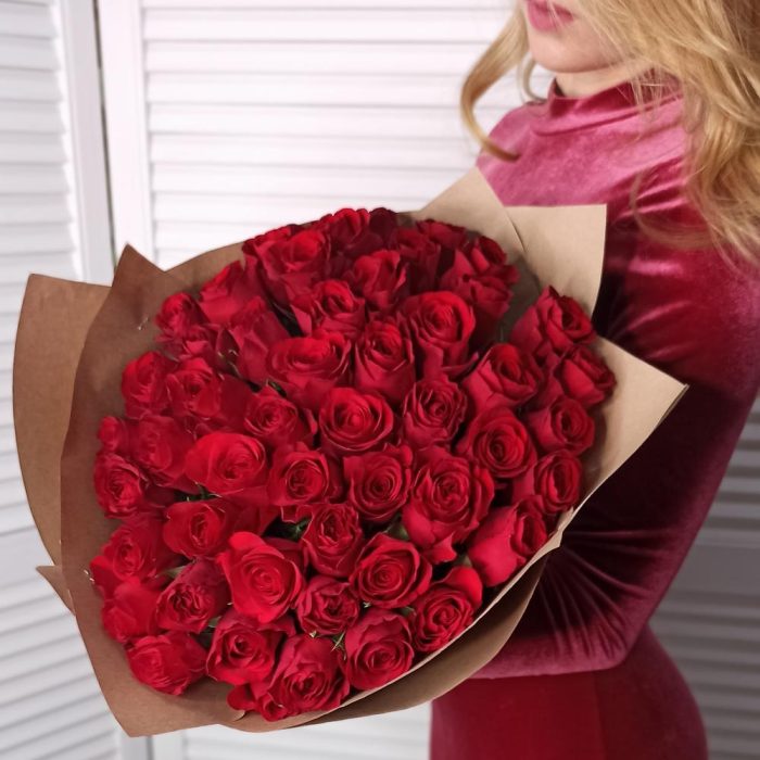 Роза – 51 шт.Дизайнерская упаковка – 3 шт.