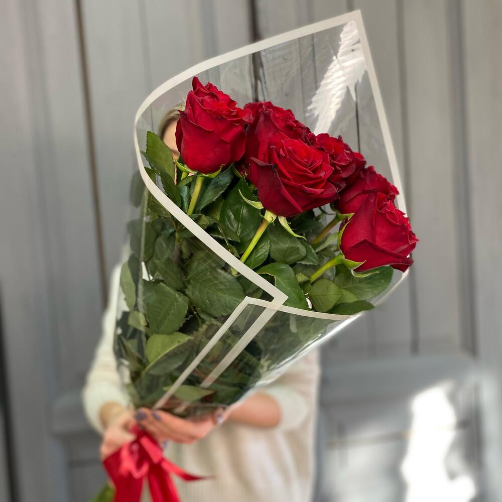 Роза Эквадор – 9 шт.Упаковка дизайнерская – 1 шт.Лента атласная – 1 шт.