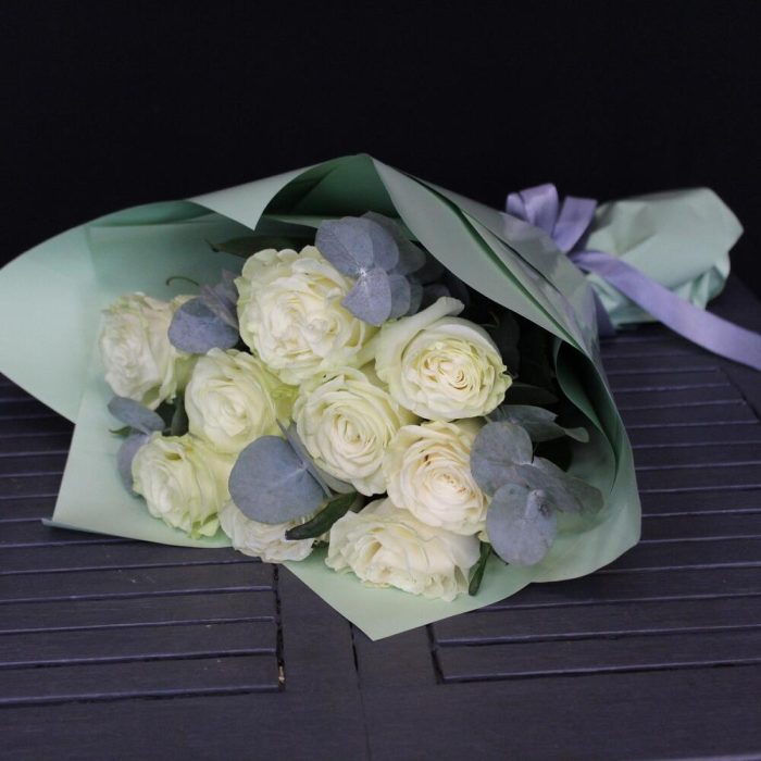 Кустовые розы с эвкалиптом