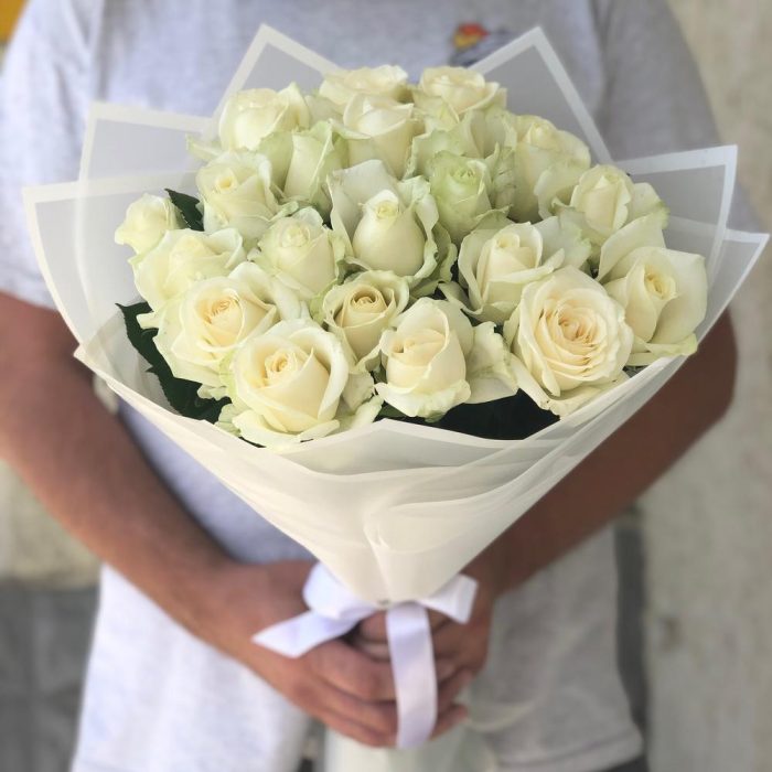 Метки: 19 роз, Белые розы, На свадьбу, от 2000 до 3000 руб, Роза 50 см