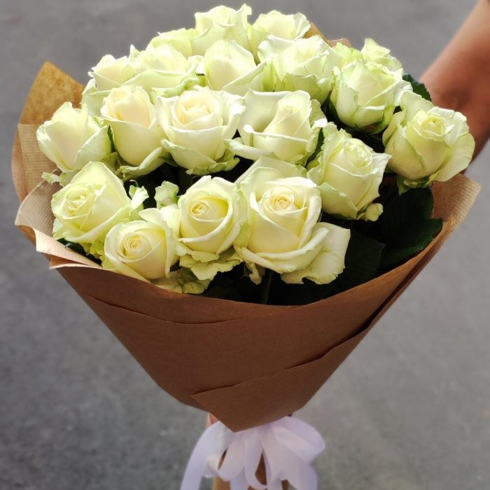 роза украинская белая – 19 шт. бумага крафт – 1 шт.