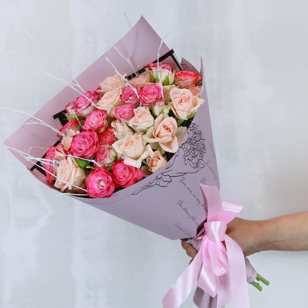 роза кустовая кения 40 см – 9 шт.берк крашеный – 5 шт.Пленка – 2 шт.Лента – 1 шт.