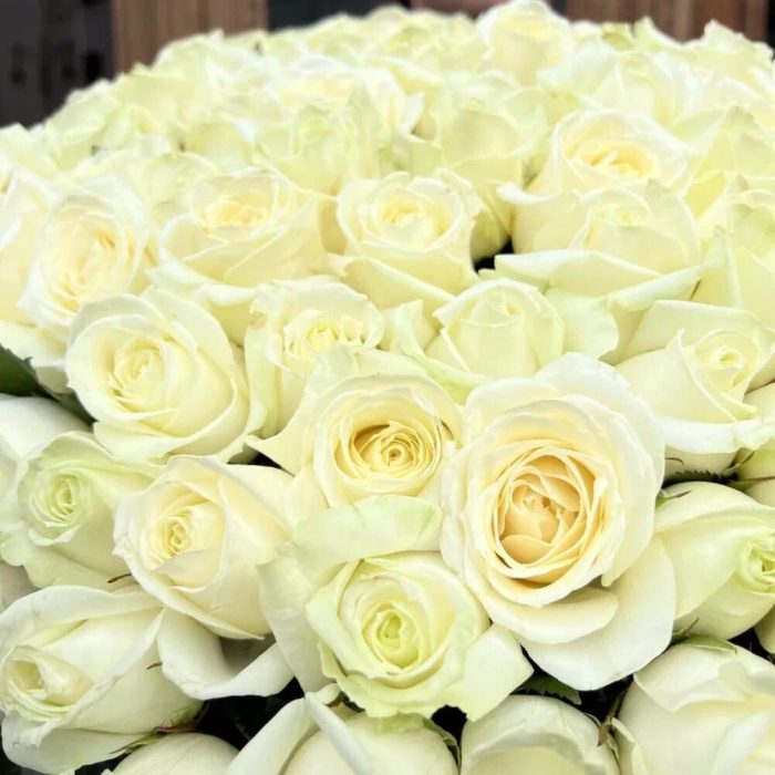 роза вайт аваланж 60 см – 101 шт.Лента атласная – 2 шт.