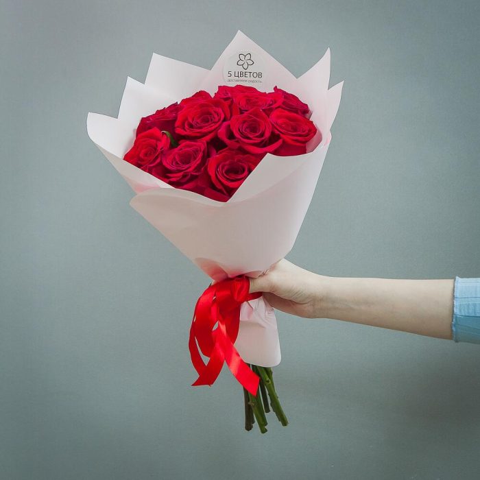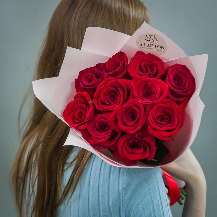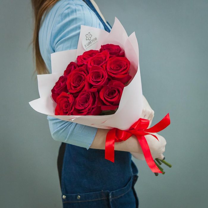 розы – 11 шт.Атласная лента – 1 шт.Матовая пленка – 1 шт.