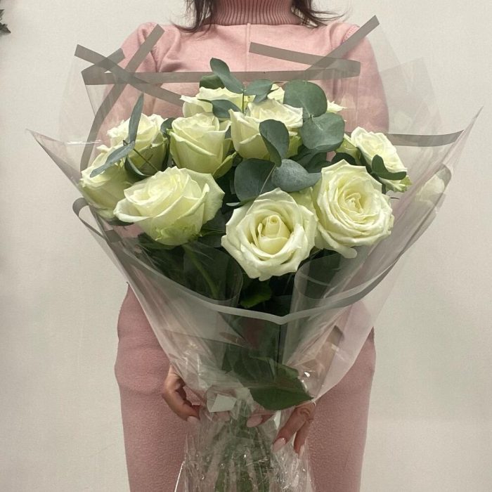 Букет из 11 роз и эвкалипта