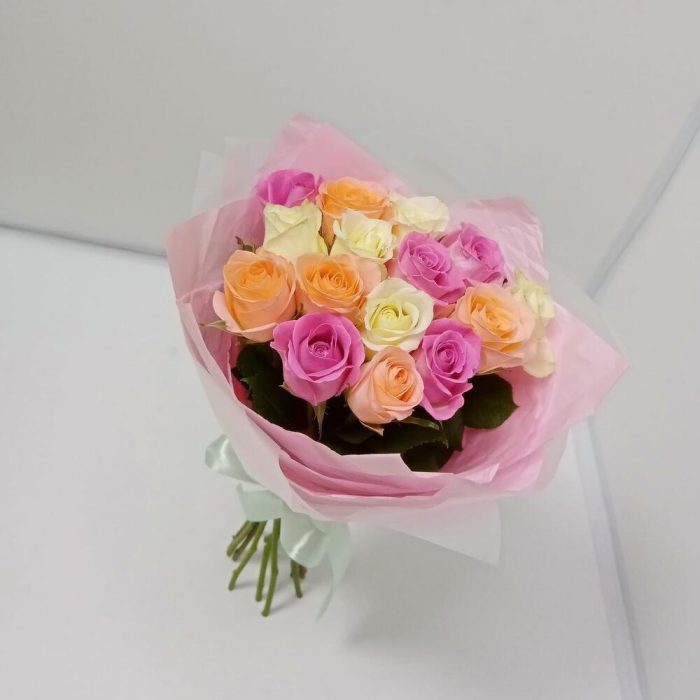 Букет из 15 роз микс 35-40 см (Кения) в упаковке