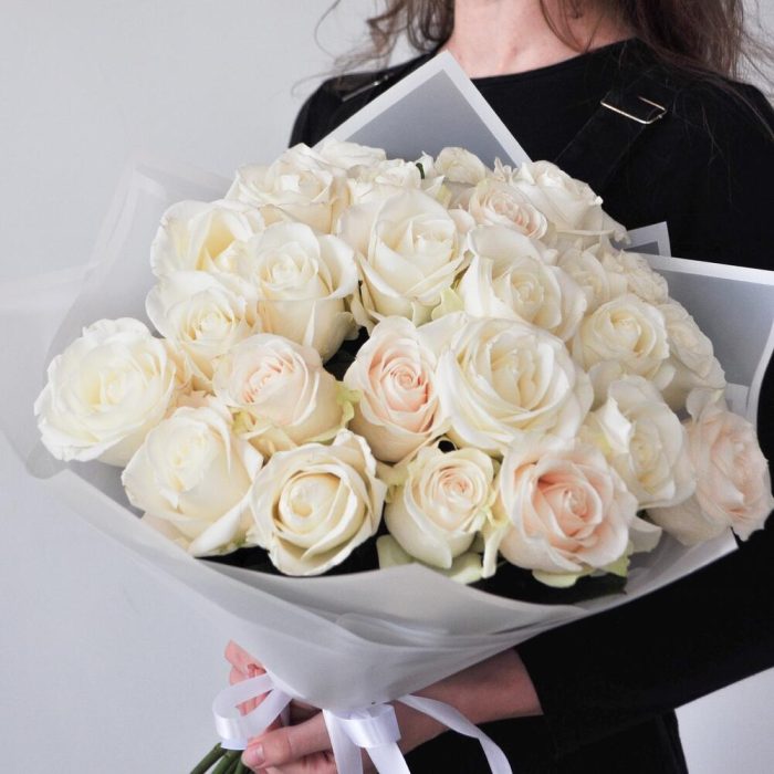 Лента атласная – 1 шт.Упаковка дизайнерская – 2 шт.Роза 70 см – 25 шт.
