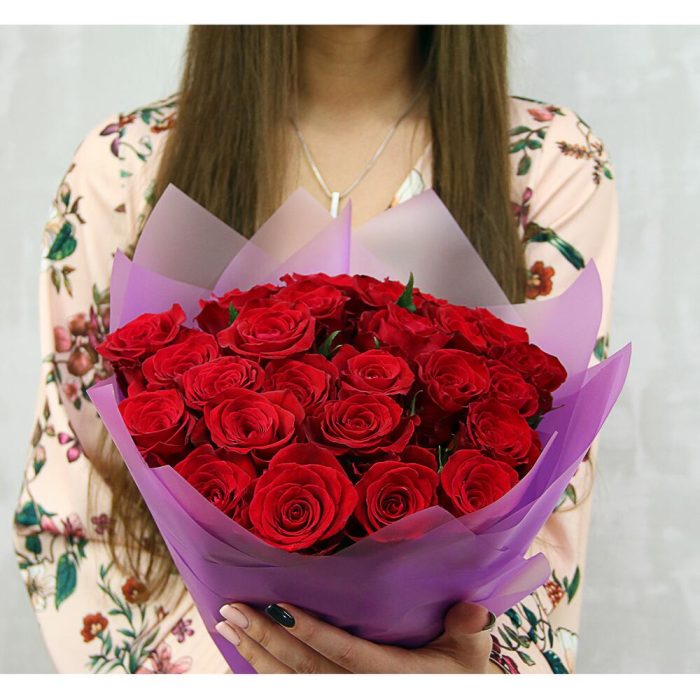Роза Эквадор – 25 шт.Пленка – 2 шт.Лента – 1 шт.