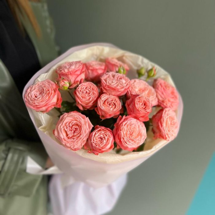 Упаковка дизайнерская – 2 шт.Кустовая роза пионовидная – 3 шт.