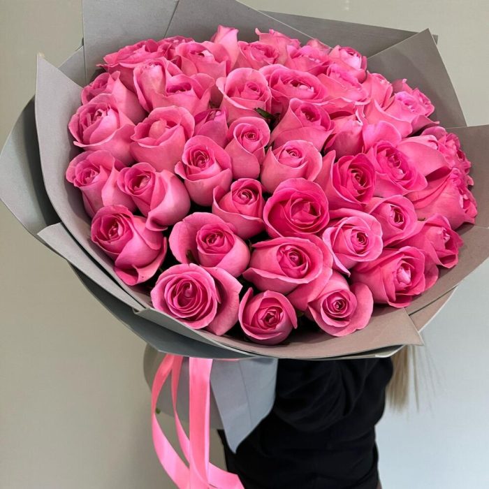 Роза – 45 шт.Лента атласная – 2 шт.Упаковка дизайнерская – 2 шт.