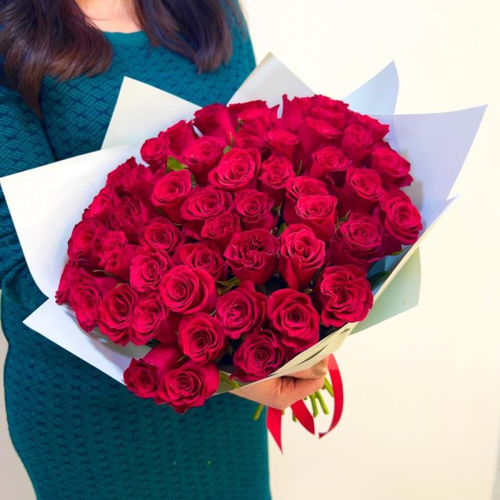 Роза красная – 55 шт.
