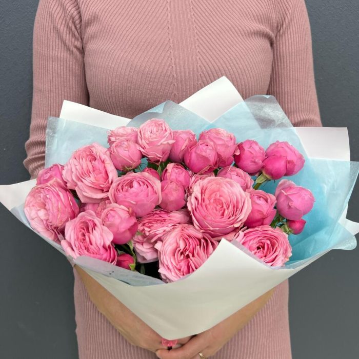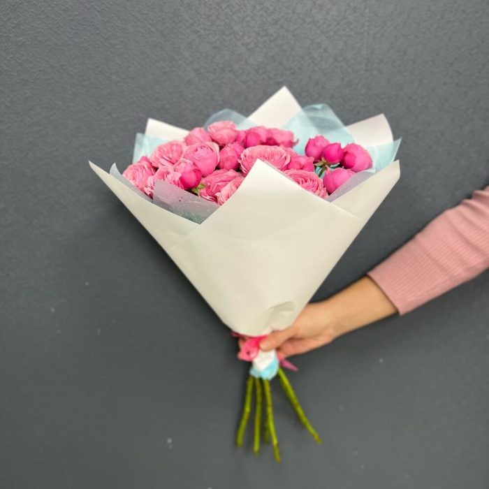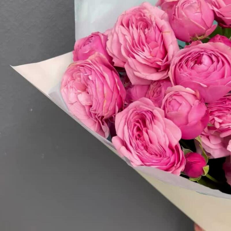 Тишью – 2 шт.Роза пионовидная кустовая – 7 шт.Пленка матовая – 2 шт.