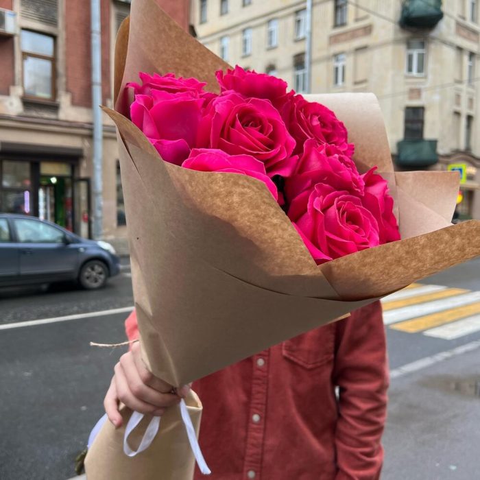 Букет из 9 розовых роз в крафтовой упаковке
