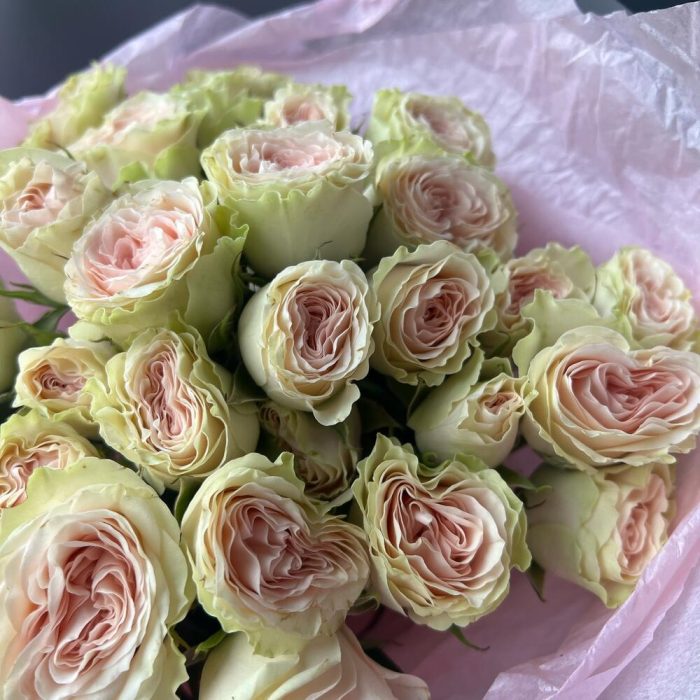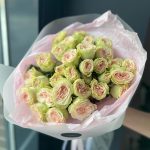 Букет из кустовой пионовидной розы «Грин пинк»
