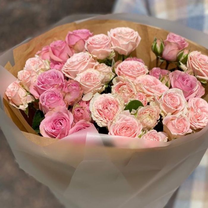 Букет из кустовой пионовидной розы Сильвия пинк