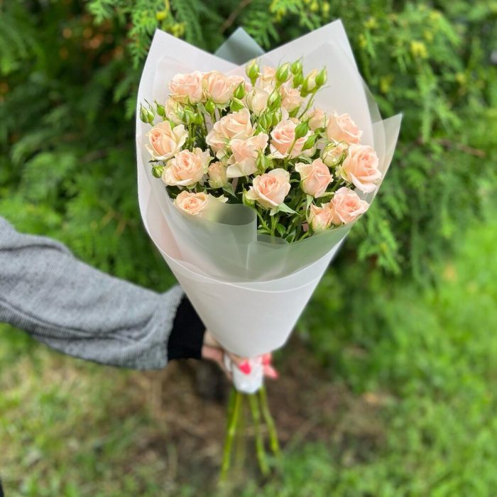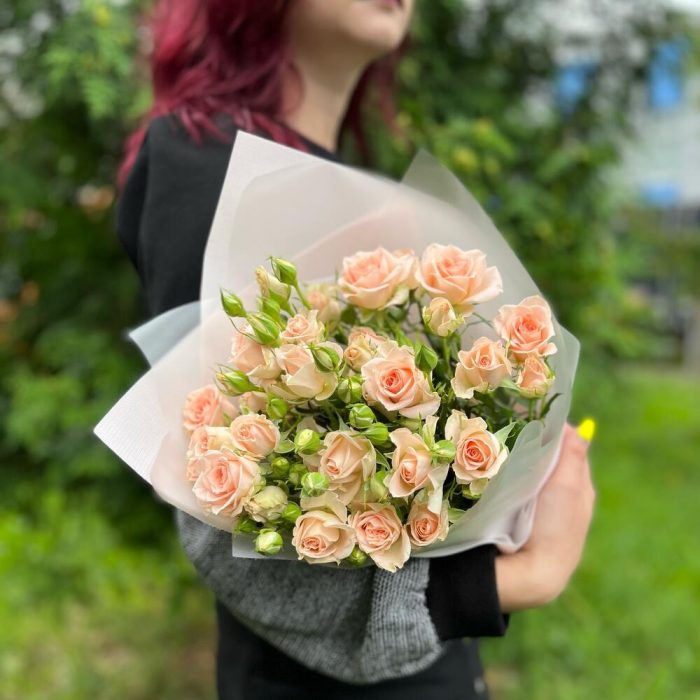 Роза кустовая – 5 шт.Пленка матовая – 1 шт.структурированны фаомиран – 2 шт.