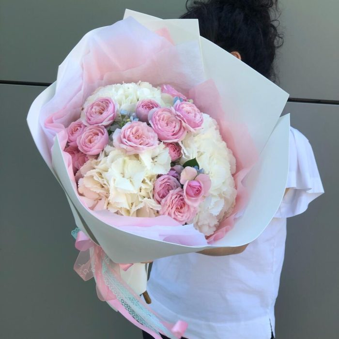 “Эвкалиптическая роскошь” гортензия и пионовидная кустовая роза