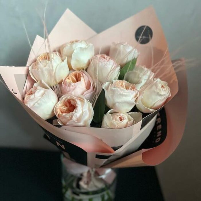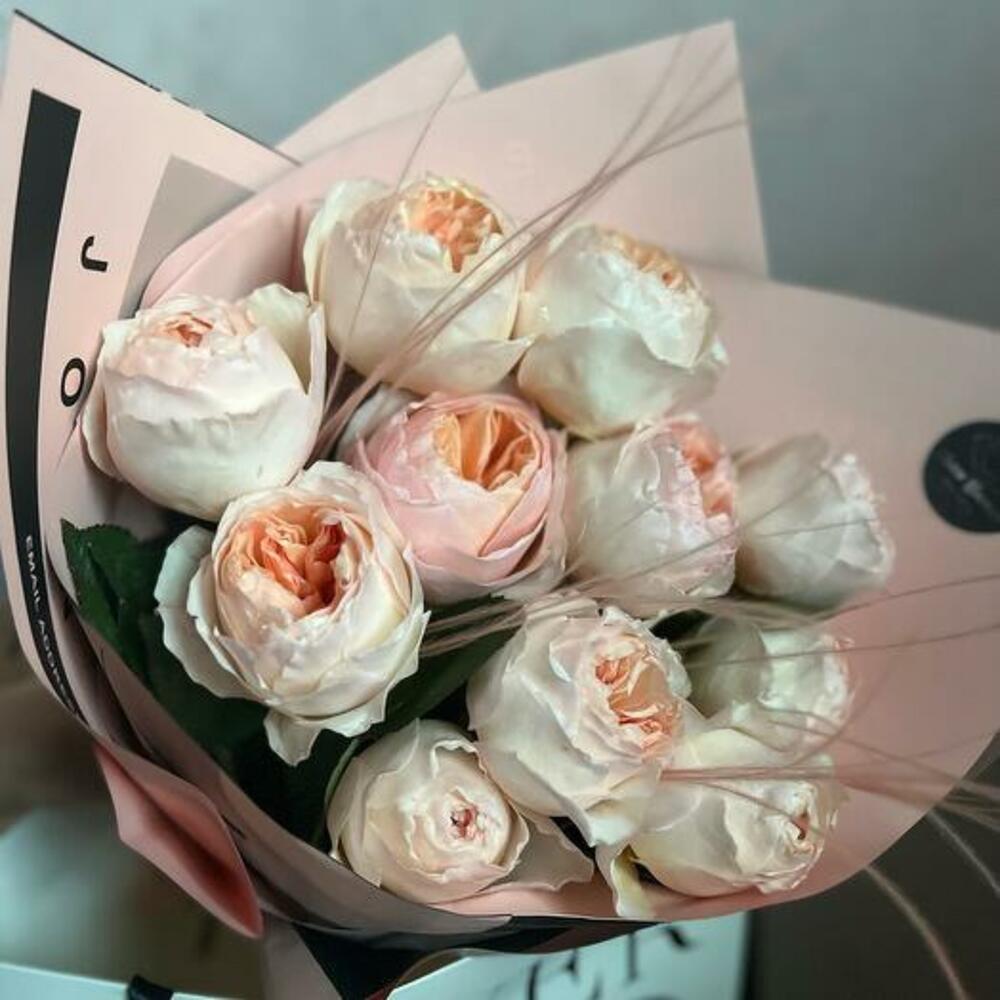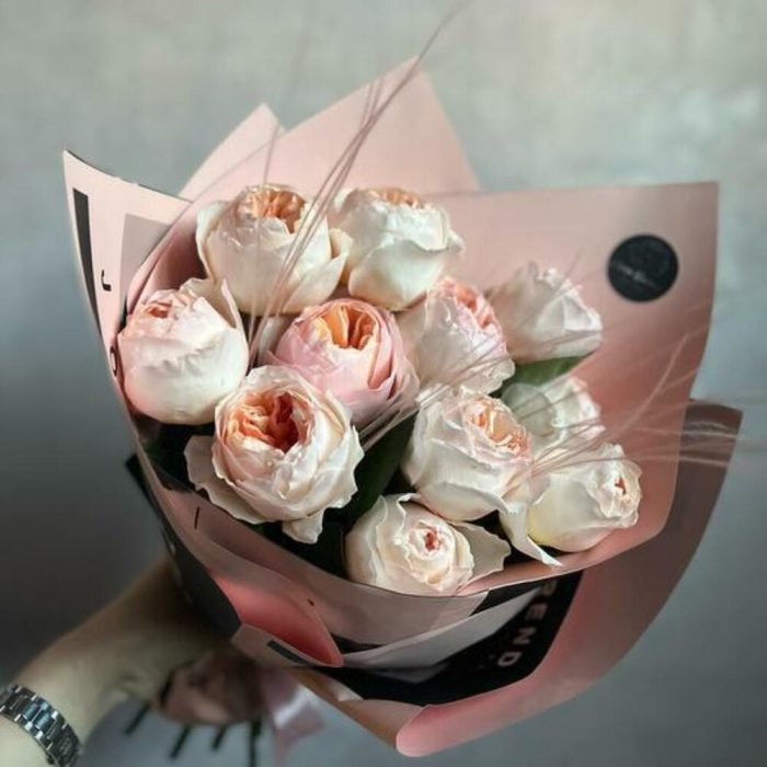 Пионовидная садовая роза – 11 шт.пучок сухоцветов – 3 шт.декоративная упаковка – 1 шт.Атласная лента – 1 шт.