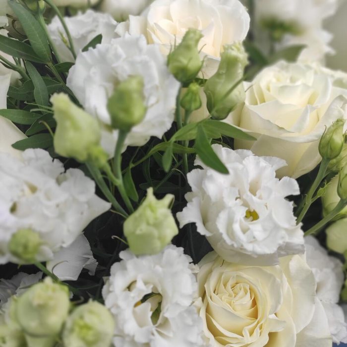 Букет из роз и эустом с фисташкой