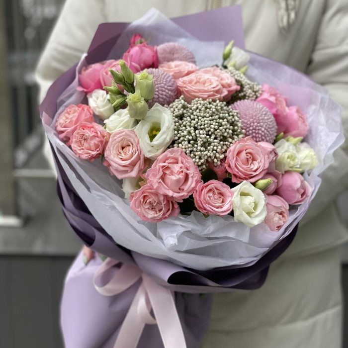 Букет Пудра из кустовой розы, эустомы и озотамнуса