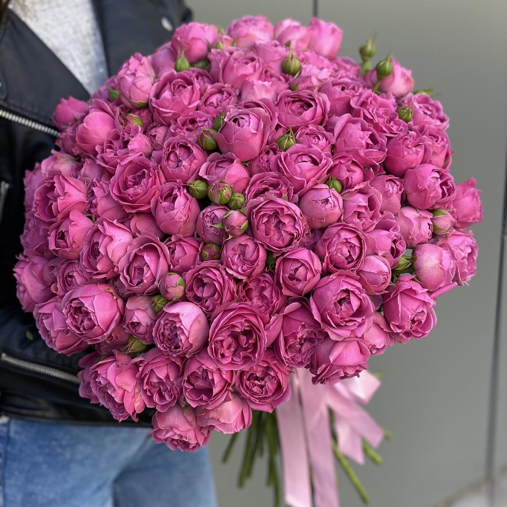 Оформление лента атласная – 1 шт. кустовая пионовидная роза misty bubbles – 35 шт.