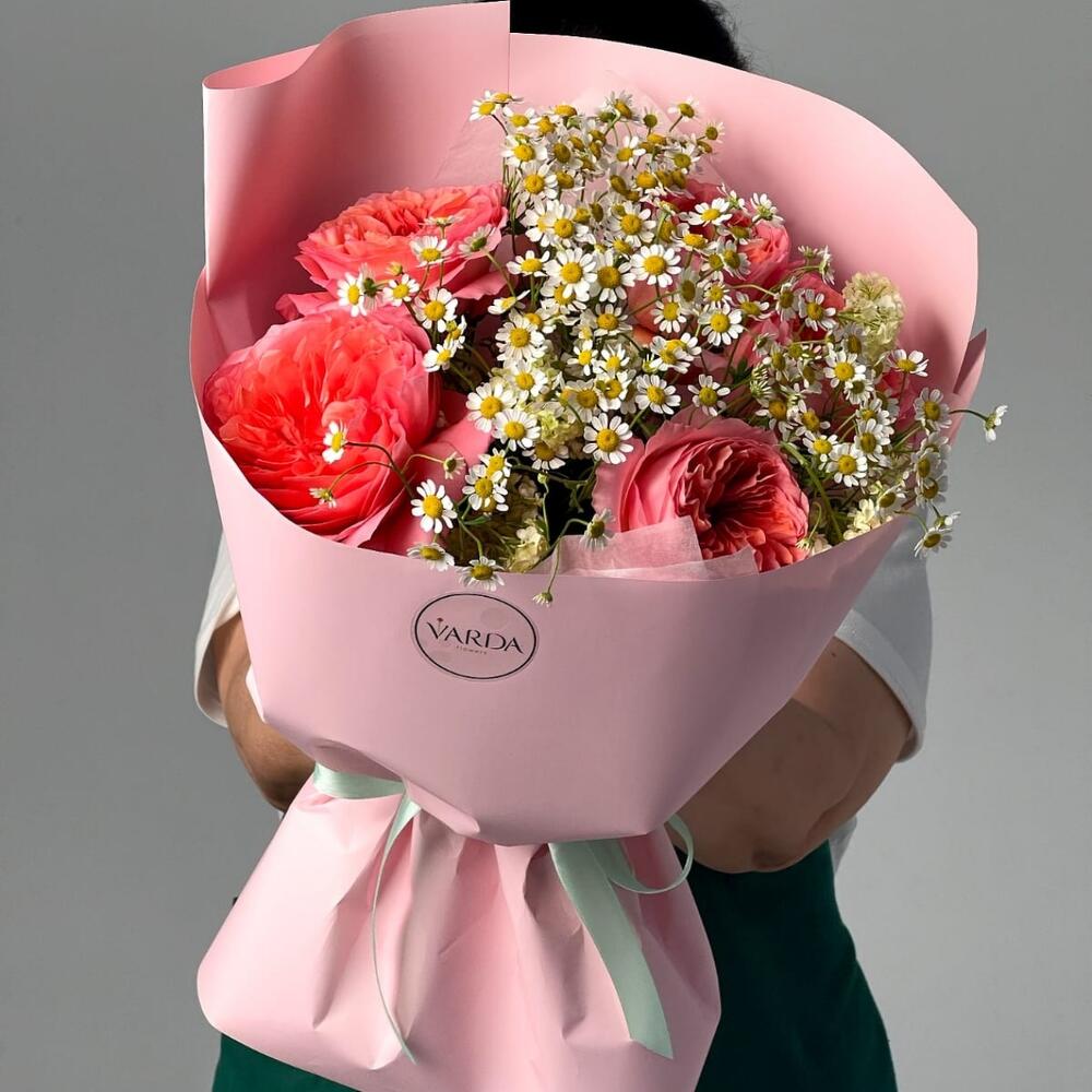 Гвоздики, Кустовые розы, Пионовидные розы, Розы