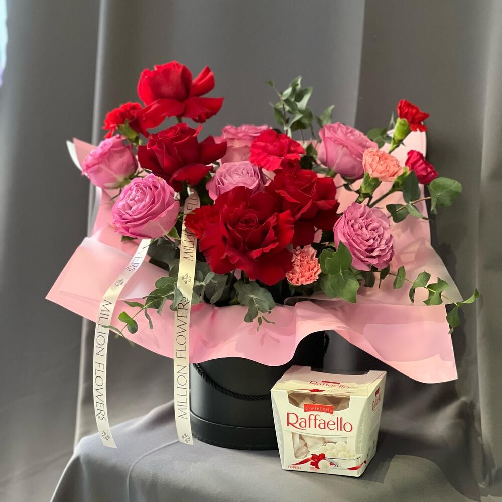 Розы со сладостями в коробке