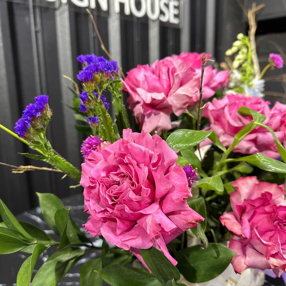 Гвоздики, Лизиантусы, Розы, Тюльпаны