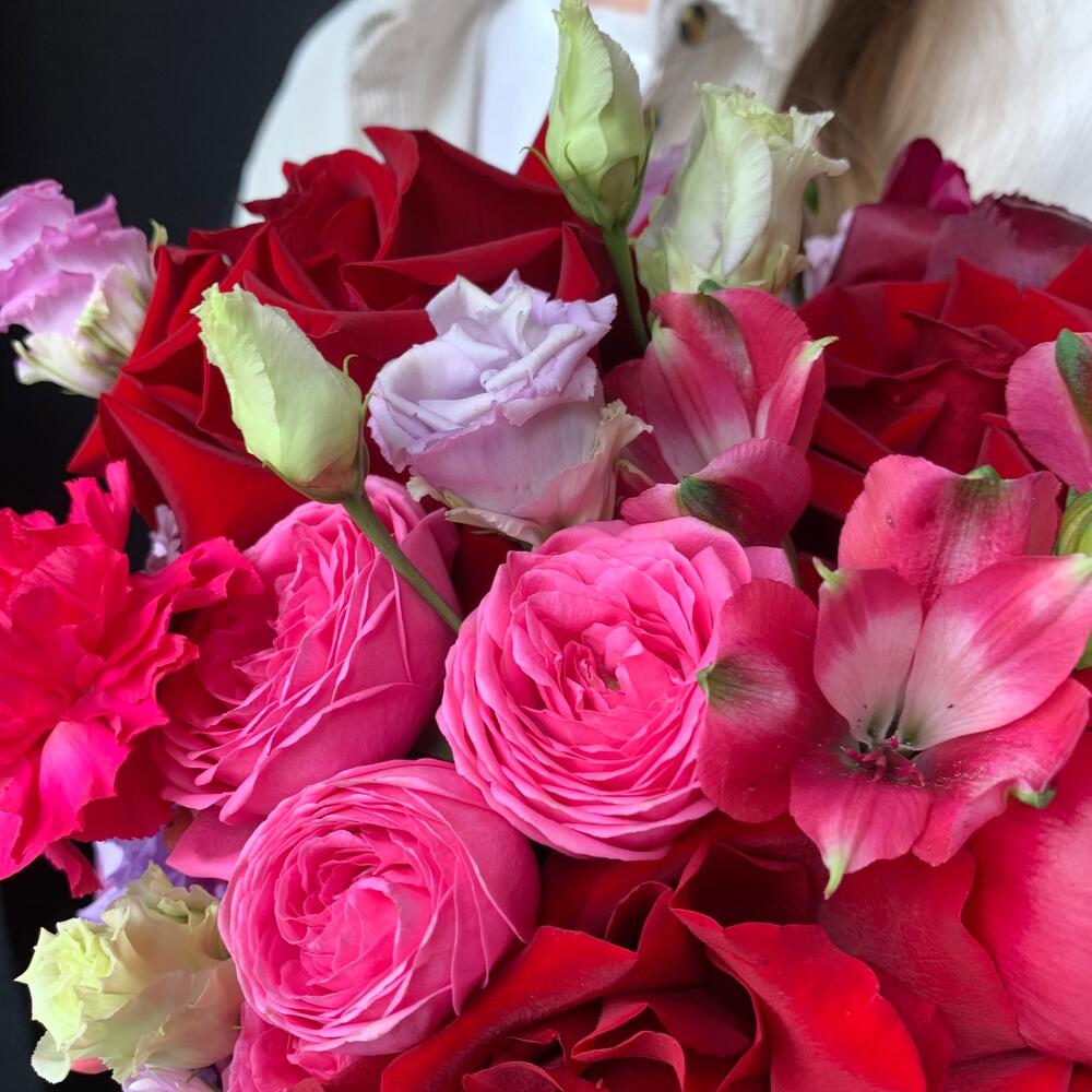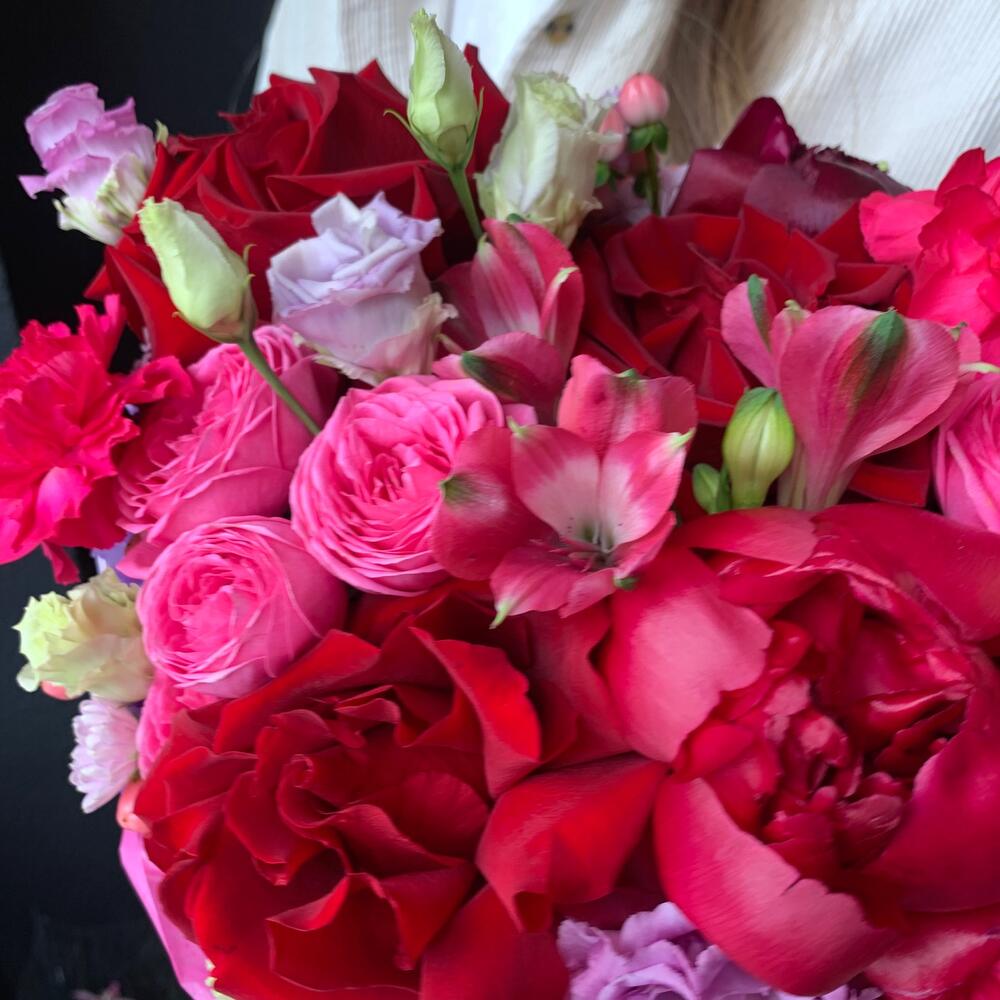 Категорий: Альстромерии, Гвоздики, Лизиантусы, Пионы, Розы, Хризантемы