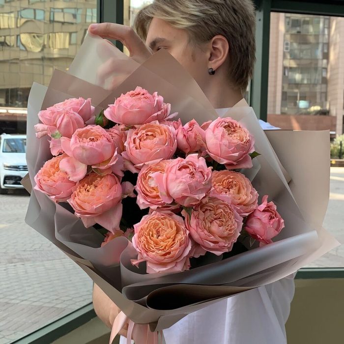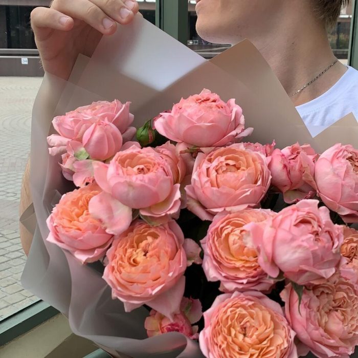 Роза пионовидная кустовая – 5 шт.Упаковка – 2 шт.Лента – 2 шт.