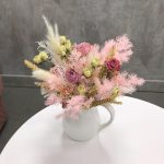 кувшин керамика – 1 шт.Оазис флористический – 1 шт.камыш сухоцвет – 1 шт.роза кустовая засушенная – 5 шт.Колосья – 9 шт.аспарагус стабилизированный – 3 шт.листья стабилизированные – 1 шт.