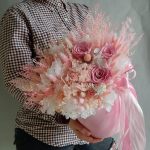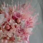 Роза стабилизированная – 3 шт.гортензия стабилизированная – 2 шт.лагурус (сухоцвет)пучок – 2 шт.Лимониум – 2 шт.аспарагус стабилизированный – 2 шт.папоротник стабилизированный – 3 шт.ветки декоративные – 15 шт.Оазис для сухоцветов – 1 шт.Коробка шляпная бархатная – 1 шт.Лента атласная – 3 шт.перо декоративное – 2 шт.