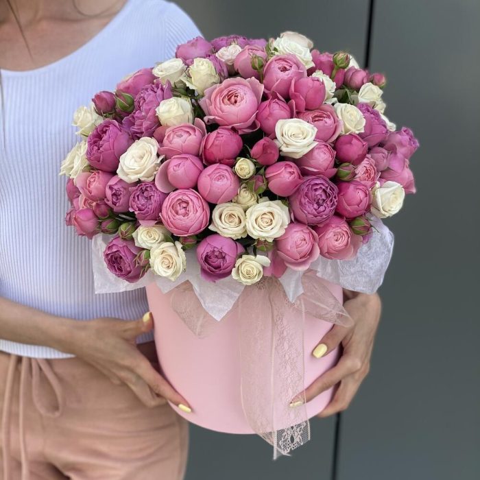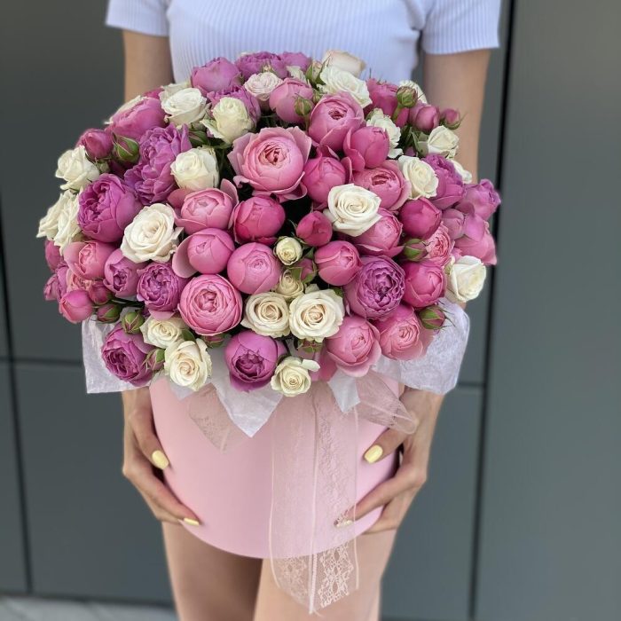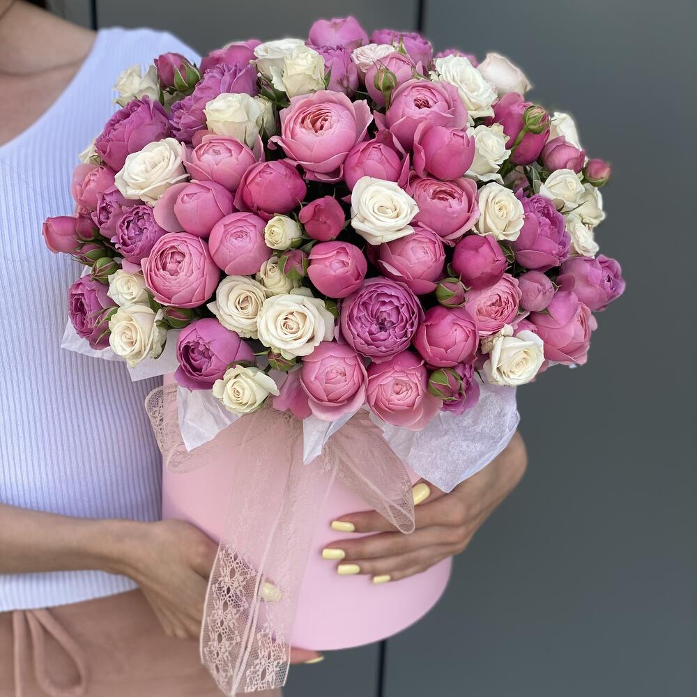 Коробка из микса пионовидных кустовых роз !