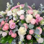 Корзина из роз и лизиантуса