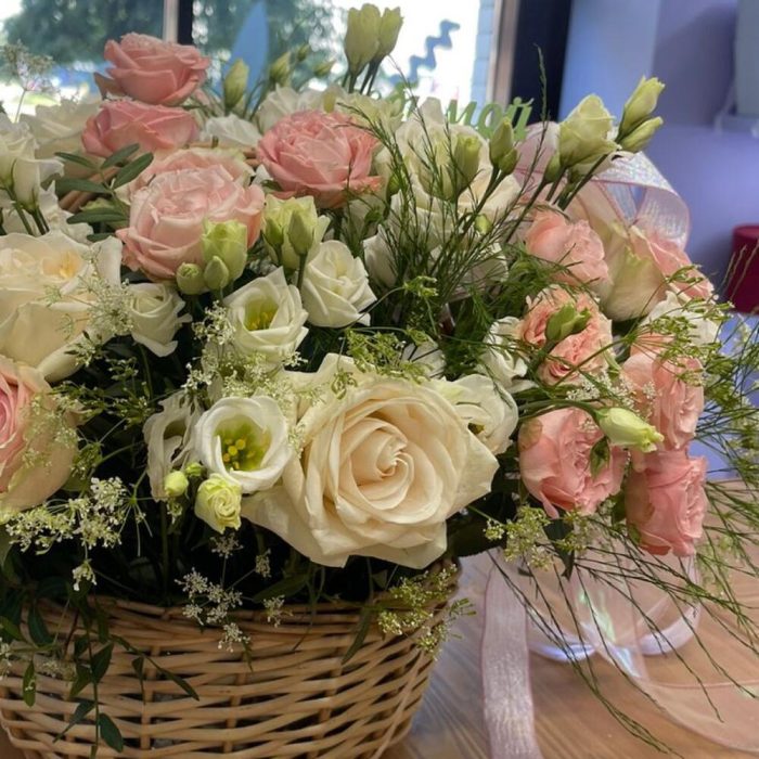 Корзина с цветами кремовая
