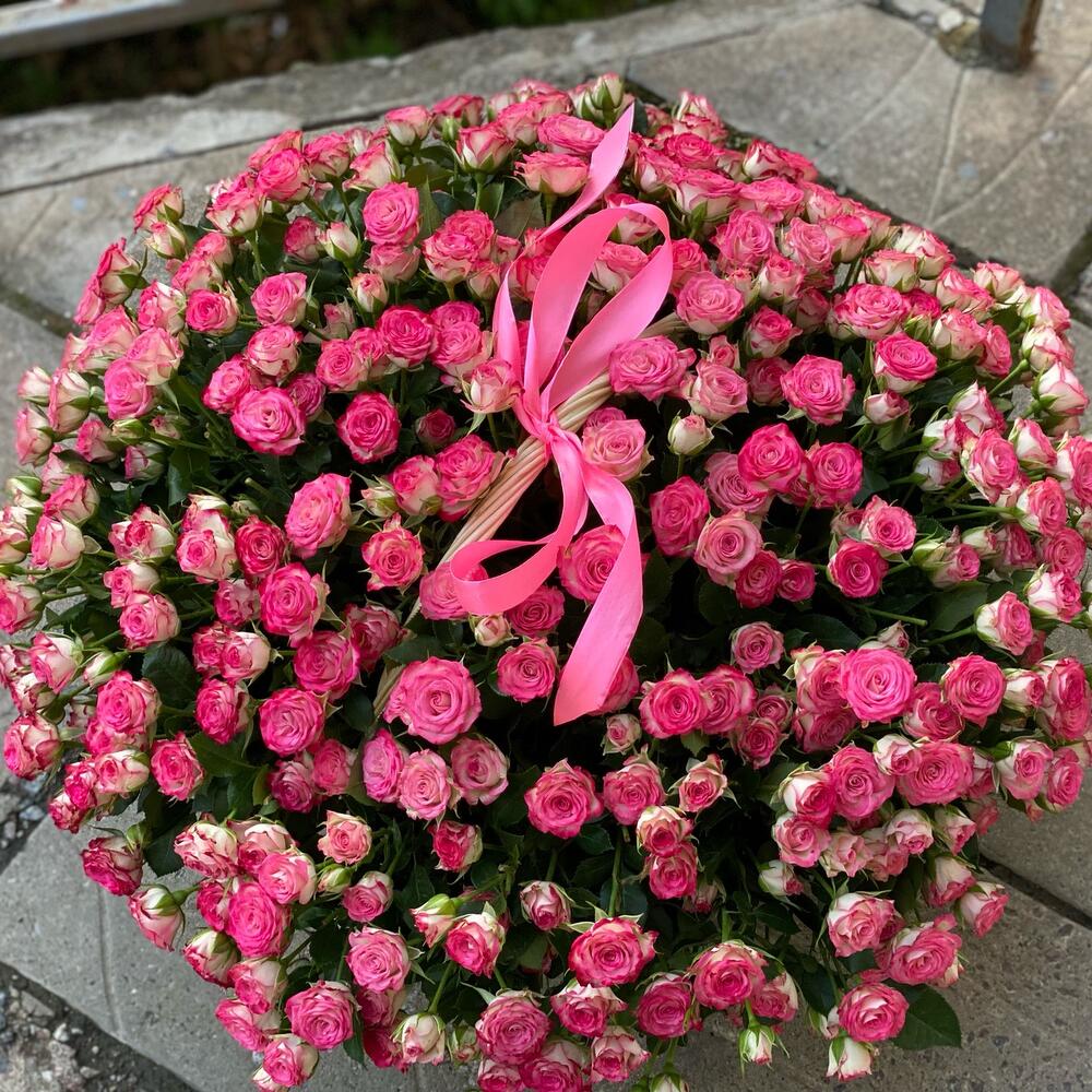 Кустовые розы в корзине