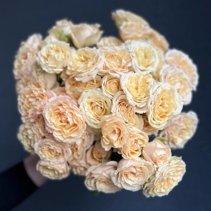 Роза кустовая пионовидная – 15 шт.Лента атласная – 1 шт.