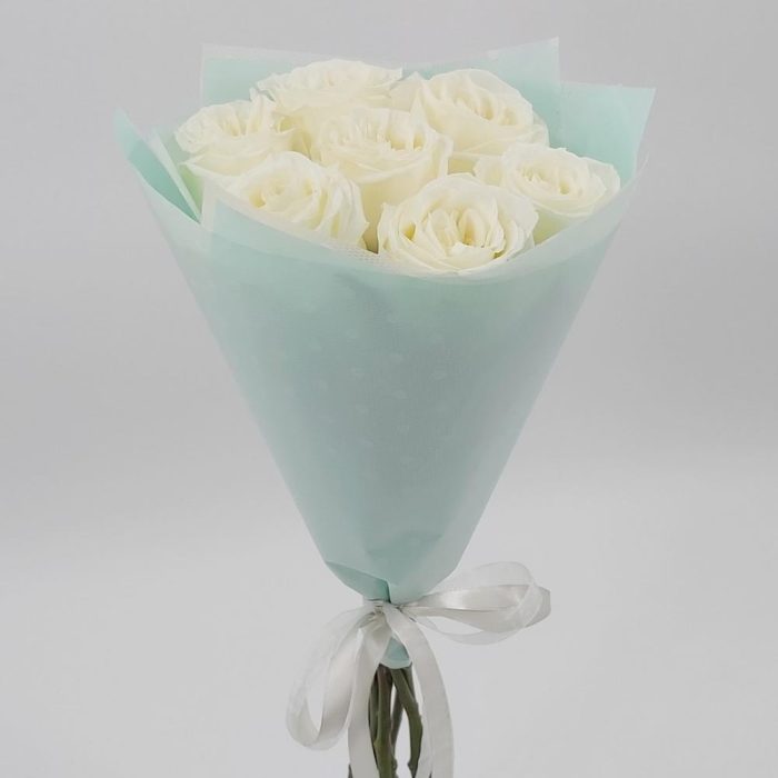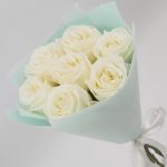 Милый букет из нежнейших белых роз в стильной упаковке. Такой букет всегда уместен и подойдёт для любого повода: День Рождения, именины, годовщина свадьбы, рождение ребенка, 8 марта, День Святого Валентина, выпускной и т.д. Можно вручить маме, сестре, подруге, коллеге, любимой.