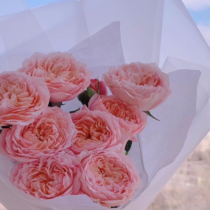 Очаровательный букет из изысканных свежих цветов.В составе: пионовидная кустовая роза ДжульеттаБукет цветов — обязательный презент для прекрасной половины человечества. Это красивый способ сделать женщину счастливой.Чтобы букет радовал дольше необходимо:❤ Ставить его в прохладном месте, избегая отопительных приборов и прямых солнечных лучей. ❤ Наполнить вазу большим количеством воды. ❤ Как можно чаще освежать срез и воду. Почему выбирают нас? – Работаем на качество. – В подарок к каждому букету витамины для цветов. – Бережно упакуем в транспортировочную пленку, чтобы защитить во время доставки от любых погодных условий. – Приложим инструкцию, как правильно ухаживать за цветами.Сохраняйте товар в подборках, чтобы не потерять