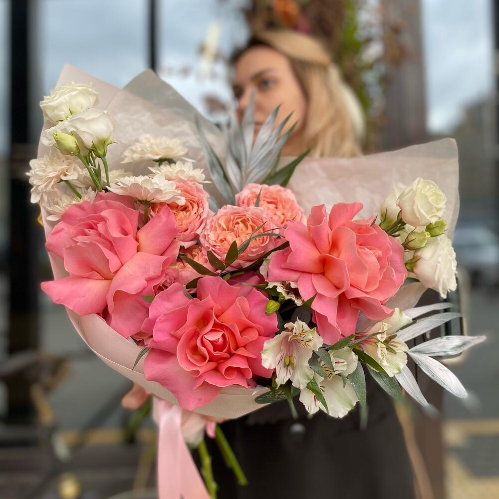 Категорий: Альстромерии, Кустовые розы, Лизиантусы, Пионовидные розы, Розы, Хризантемы