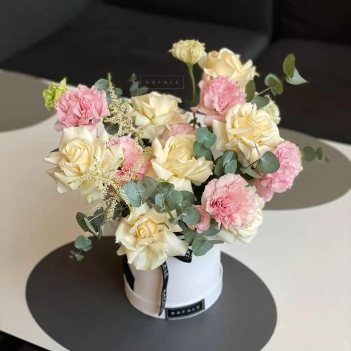 Роза голландская 60 см – 7 шт. астильба (голландия) – 2 шт. лизиантус (израиль) – 4 шт. эвкалипт (голландия) – 2 шт.
