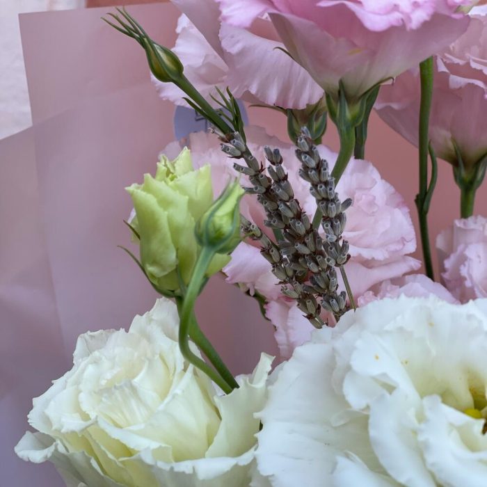 Лаванда – 7 шт.Лизиантус – 5 шт.Дизайнерская упаковка – 1 шт.