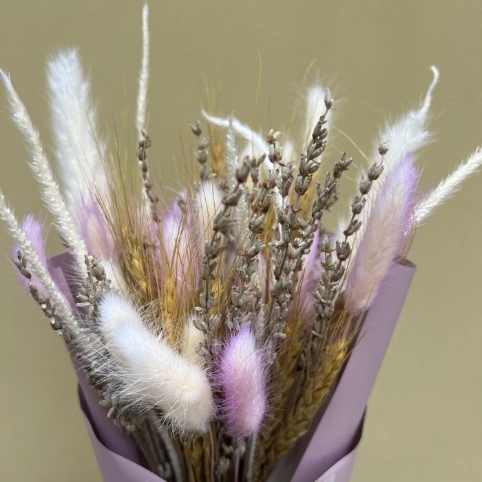 Лагурус – 10 шт.Лаванда – 13 шт.Пшеница – 5 шт.Упаковка дизайнерская – 1 шт.